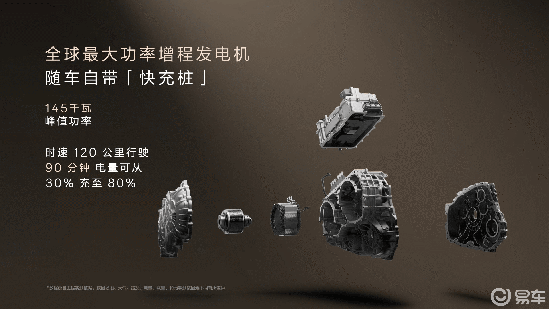 此外,极氪9X还搭载了全球最高功率145千瓦增程发电机,峰值功率高于多数国网快充桩。在时速120公里高速馈电工况下,SoC从30%到80%仅需90分钟,边开边充电,越跑电越多。