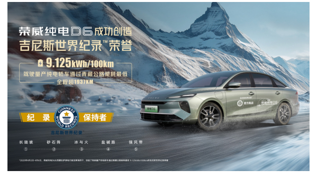 要知道,荣威纯电D6的续航还拿过吉尼斯世界纪录!在吉尼斯官方的全程公证下,荣威纯电D6以9.125kWh/100km的电耗成绩获得“驾驶量产纯电轿车通过青藏公路能耗最低”世界纪录,代表中国纯电车技术登临世界之巅!此外,荣威纯电D6还拿到了中汽研权威认证的“低能耗之星”。一个个权威的认可,我们说一句荣威纯电D6是“十万级纯电家轿续航标杆”一点不为过吧?