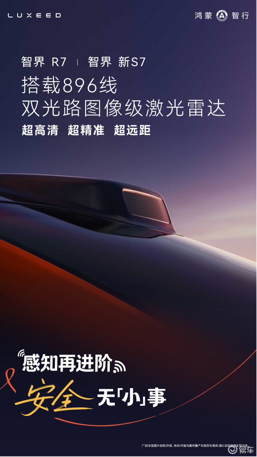 在智能驾驶感知层面,智界双7搭载了全球量产最高规格的896线双光路图像级激光雷达。其首创的双光路架构,让两个光路各司其职:一个负责广角纵览全局,另一个聚焦前向远距离细节,二者协同工作,一体双焦成像,形成“高清画中画”效果。这一突破将车载感知系统从“点云时代”正式推入“3D成像时代”,带来感知能力的代际跃升——可远距离识别14cm高度的物体,倒地轮胎等低反射率目标感知识别距离提升190%,横倒锥桶等异形障碍物感知识别距离提升77%。