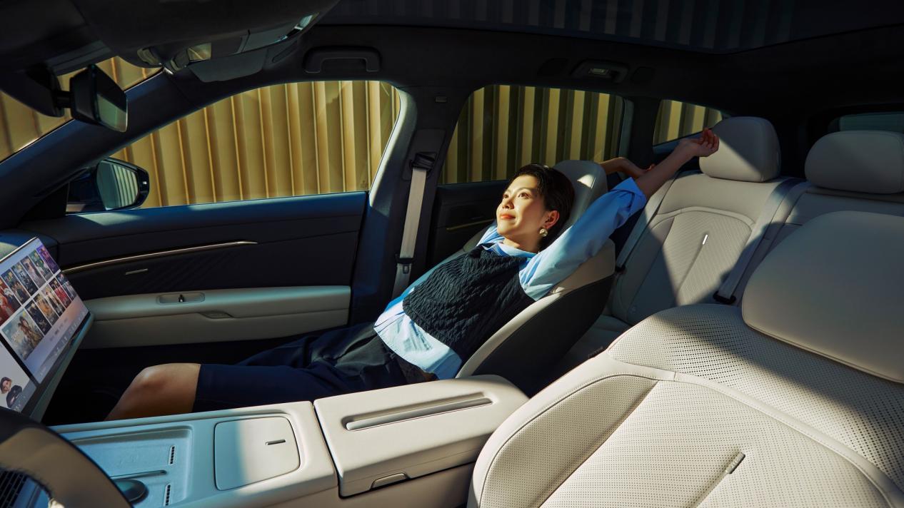 与众08 的舒适配置堪称“卷王”,配备电动腿托的座椅支持12向电动调节,并集成了气动腰托、通风、加热及10点气动按摩功能;靠背可放倒至120°形成零重力舒享躺姿,更可舒展至180°秒变大床;配合超宽柔光4500K暖白光化妆镜与独立的15英寸娱乐屏,营造出女王般的尊享体验。