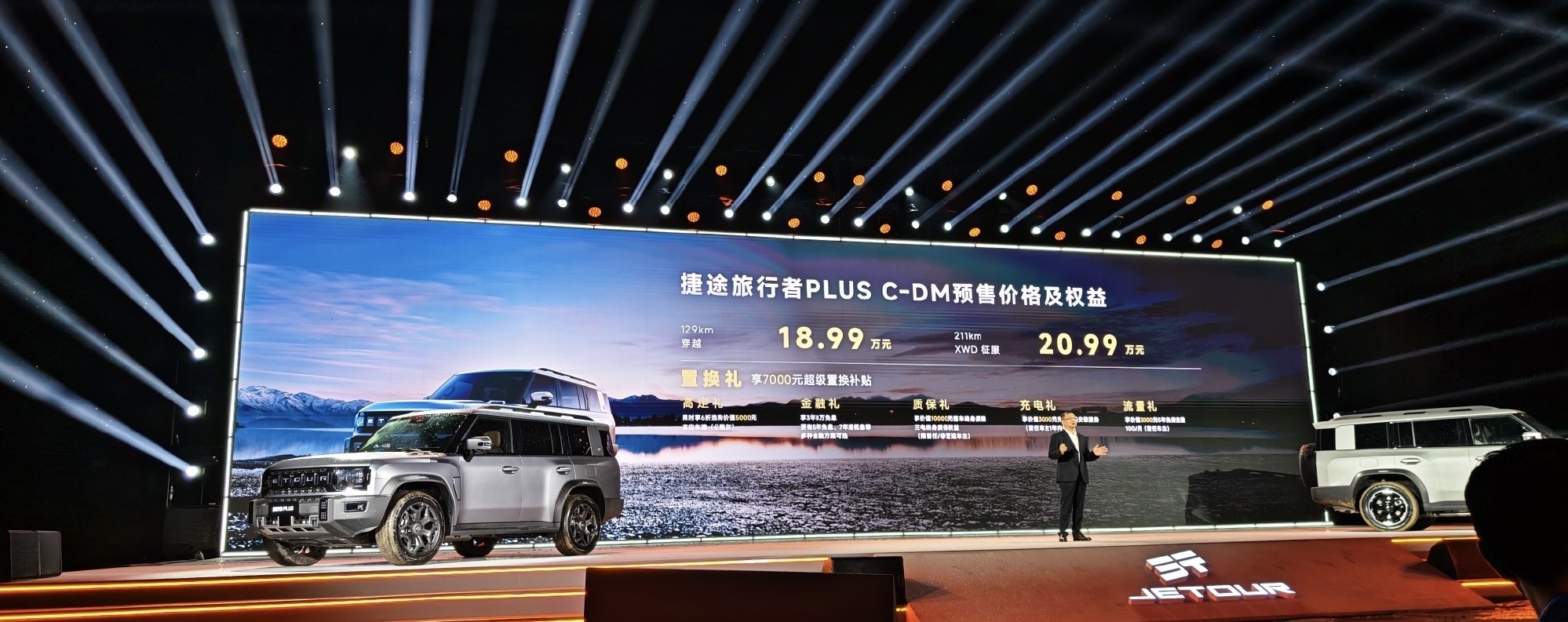 本次活动重头戏,当属捷途旅行者PLUS与捷途旅行者PLUS C-DM双车正式开启预售,以燃油+电混双动力布局,满足不同用户需求。