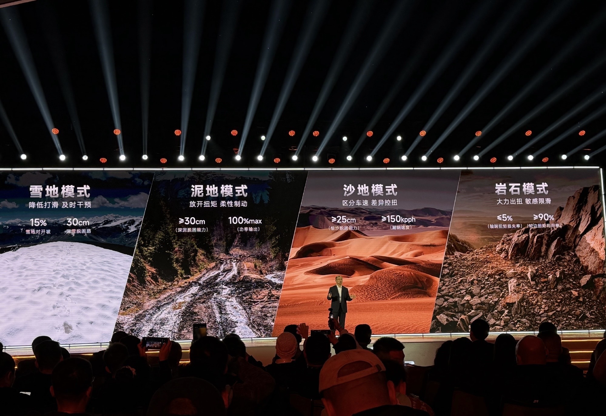 该技术拥有六大核心优势:0.01秒路况识别、0.07秒极速执行,响应速度比传统四驱快20%;左右轮扭矩控制精准,操控稳定性大幅提升;90%地形感知率,匹配7套地形模式,智能降低能耗;配备电控牙嵌锁,0.1秒锁止,轮端扭矩可达8000N·m,泥地、交叉轴轻松脱困。搭配行业独有的7+X一键智能模式,无需专业操作,一键自动适配路况,新手也能从容越野。历经全球极端环境测试与超480亿公里用户实测,可靠性拉满。