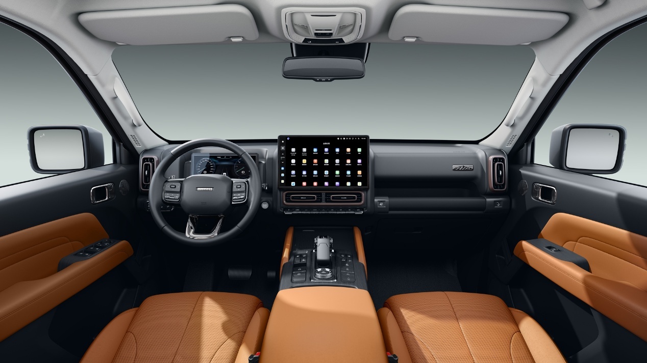 四驱与操控,标配“三把锁”(TOD+Mlock+前后锁)与博格华纳四驱系统,新增岩石模式、专家模式后,驾驶模式扩展至9种。配合低速越野巡航、坦克转弯(最小转弯半径5.8米)、540°全景影像,新手也能精准应对复杂路况。