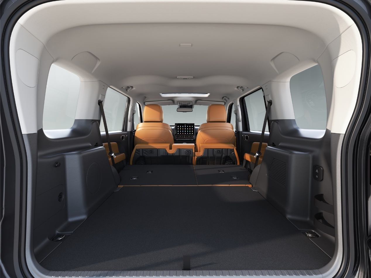 车身尺寸达到5070/1976/1960mm,轴距2850mm,提供5/7座灵活布局。五座版后排纯平放倒后,后备厢容积可达 1814L,露营装备、摄影器材甚至小型户外工具均可轻松容纳。标配2.5吨拖车资质,更支持拖拽房车、摩托、UTV,进一步拓展户外半径。