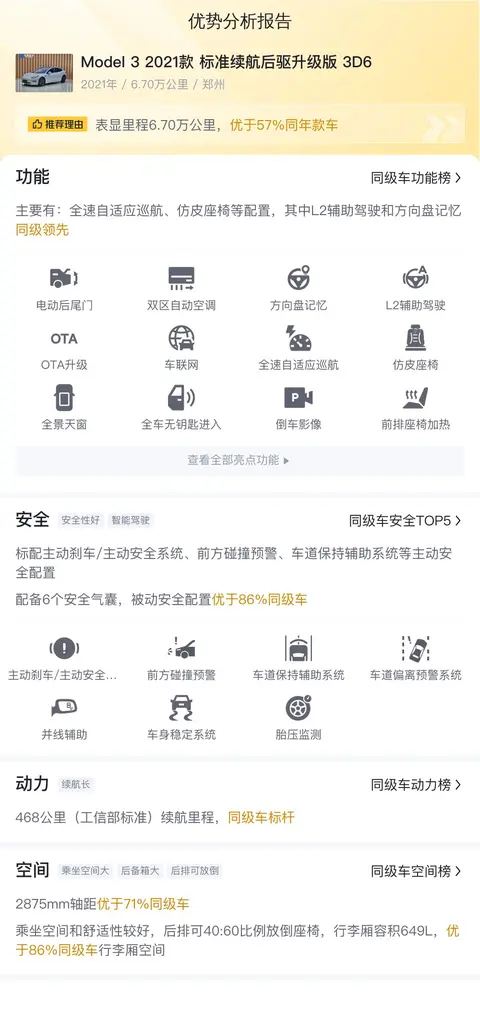 当谈论到电动汽车,特斯拉的名字总是第一个跳入人们的脑海。自2003年成立以来,特斯拉以其创新技术和对可持续能源的承诺,彻底改变了我们对汽车的认知。今天,我们要聊的是一辆二手2021款Model 3(图片|配置|询价) 标准续航后驱升级版3D6,一辆不仅承载了特斯拉的品牌精神,更在个人轿车领域树立了新的标杆。