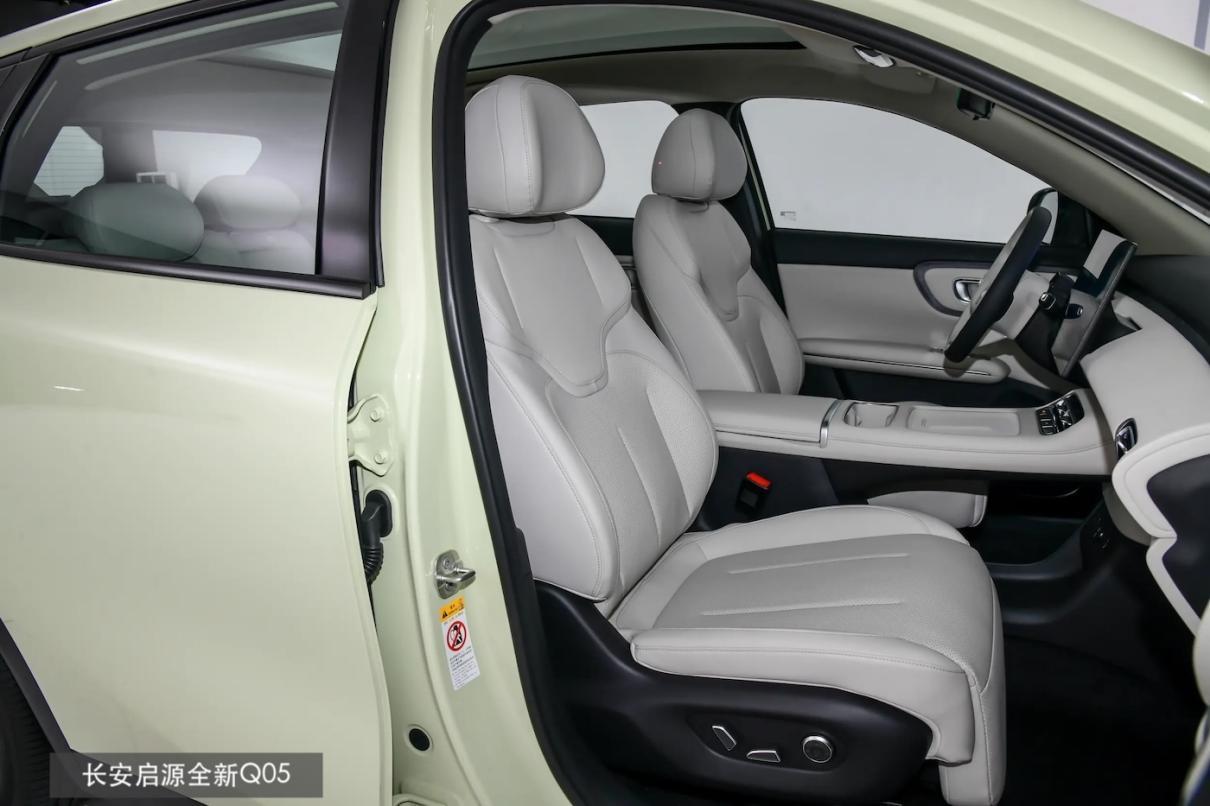 长安启源全新Q05除了加热通风外,前排还支持按摩与10向电动调节、副驾带腿托,真要是腰背不好或是长时间乘坐,舒适度都要高些,冬天开累了还能在副驾打个盹儿。另外,车辆还有二排靠背可调、256色主动氛围灯,全车的氛围与舒适度确实要更高些。