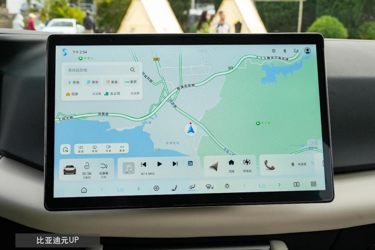 其中,元UP的DiLink座舱标配8.8+12.8英寸双屏,并有算力为12TOPS的D100芯片支持,车机系统内存为12GB,应该说无论是QQ音乐、喜马拉雅等应用使用,还是四区域对话,都比较流畅,方言对话也好用。