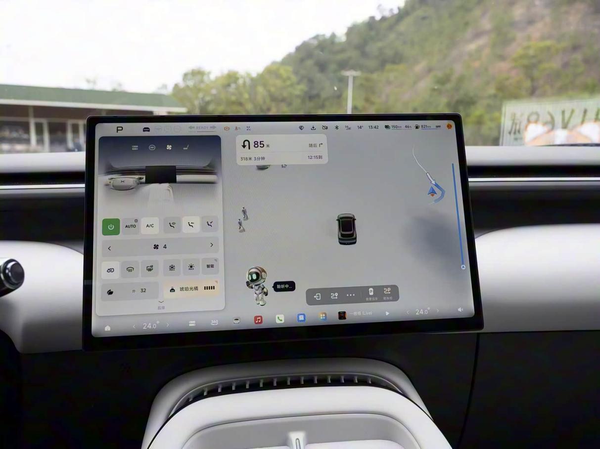 内饰方面,车内采用简约的环抱式座舱布局,车内基本没有物理按键,功能集成于悬浮式中控屏当中。简约的双辐方向盘前方仅配有AR-HUD抬头显示,继续采用无仪表设计。