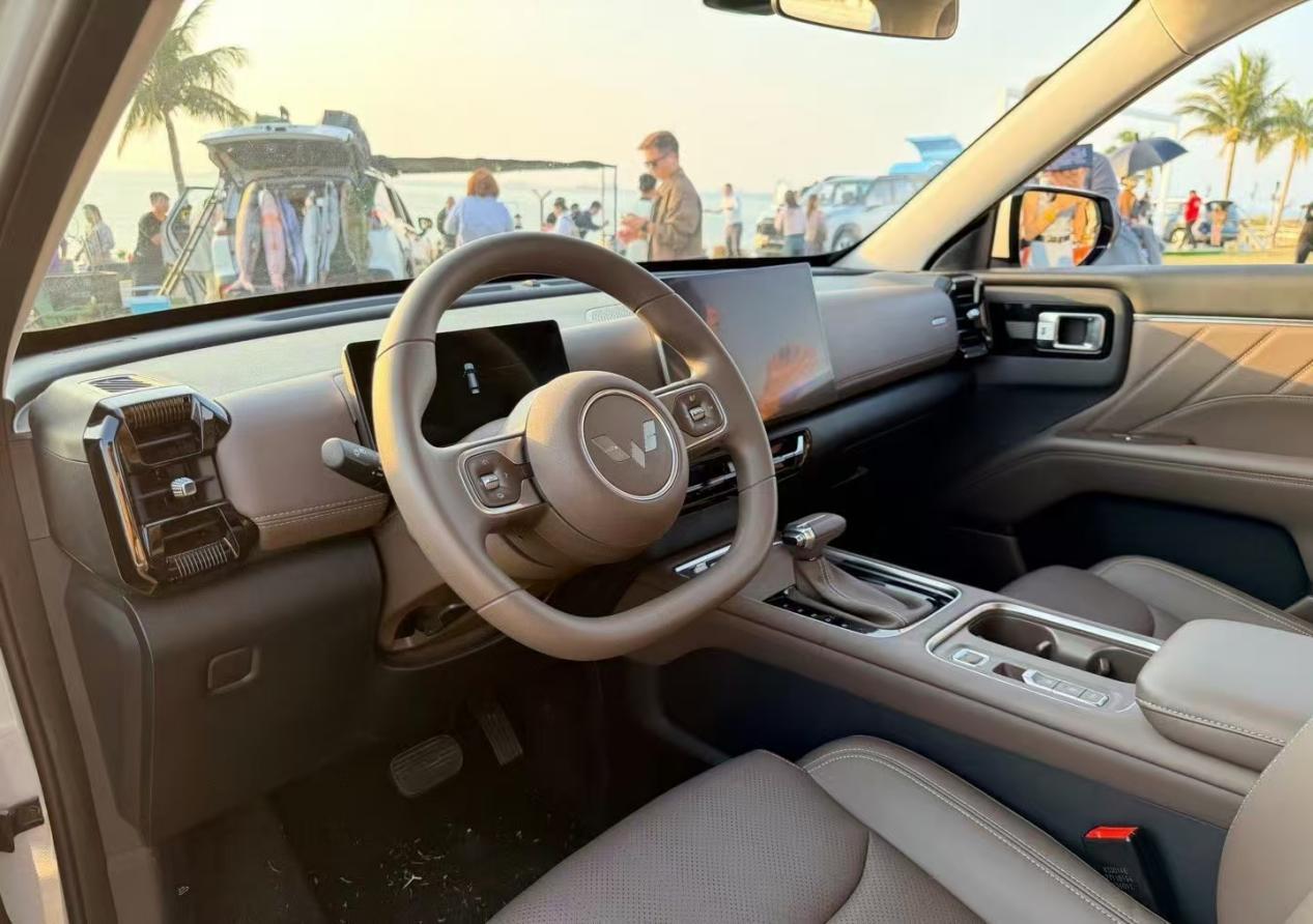而插混版车型的表现就比较全面了,纯电续航125km(CLTC),日常上下班通勤完全能当纯电车开,综合续航能到1100km,馈电油耗也才5.3L/100km(WLTC),基本是告别续航焦虑了。另外插混版和纯电版都有220V外放电功能,出去露营的时候不用担心电源问题了,体验感更好。