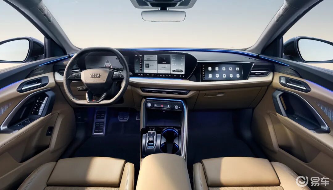 车内部分则是目前奥迪主流的内饰设计风格,配备11.9英寸液晶仪表盘+14.5英寸OLED中控屏+10.9英寸副驾娱乐屏。同时,奥迪还将提供13.1英寸W-HUD选装,可以将路径规划与实景道路叠加显示。